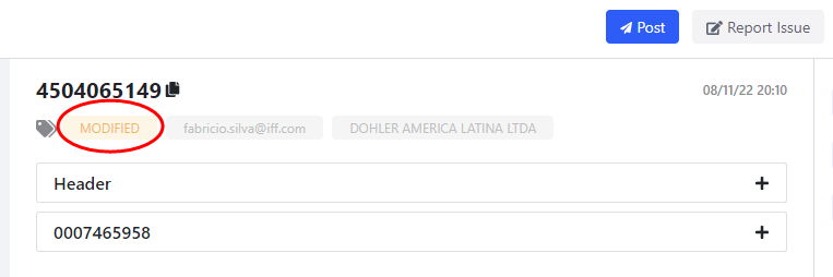 Once the modification has been stored, the status will be changed from ‘New’ to ‘Modified’. And the system will repost the revised result to the SAP automatically.