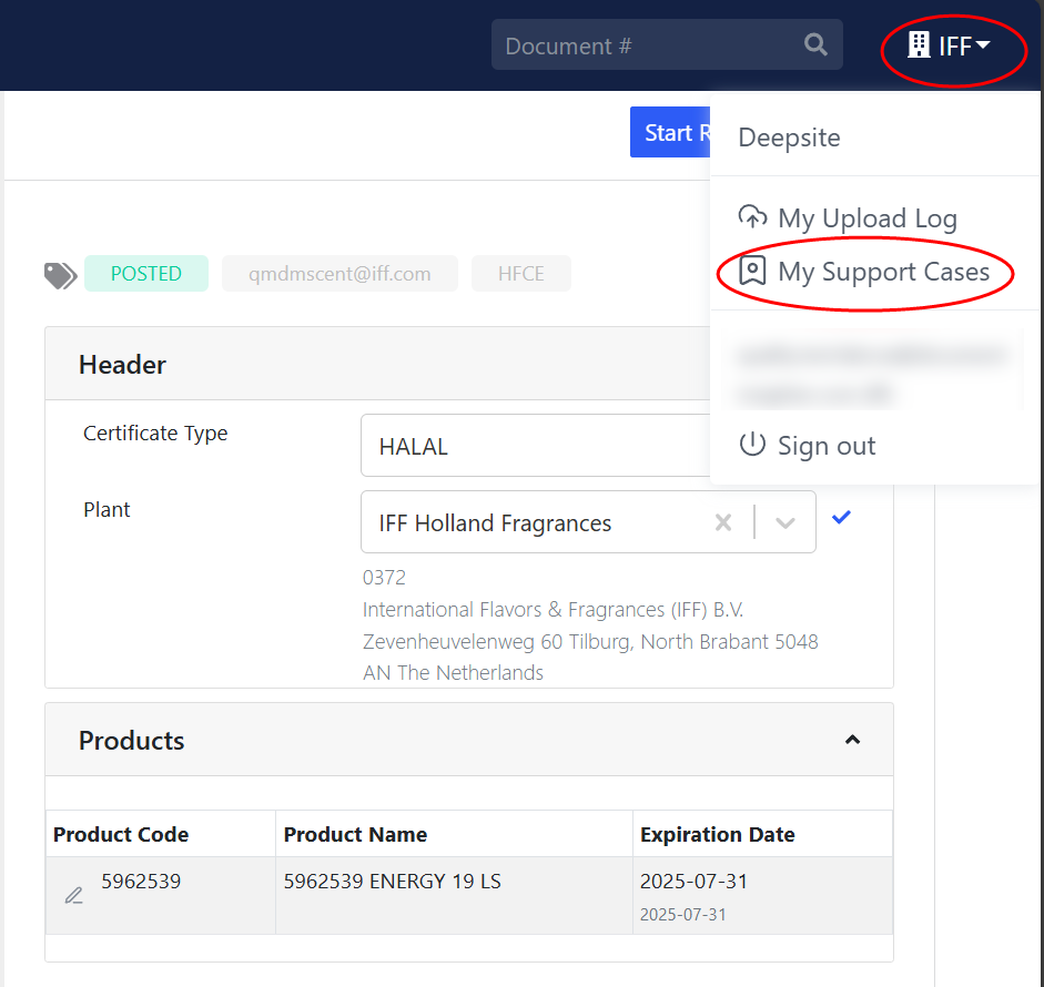 Lists all products extracted from the certificate: - Product Code: IFF sales code mapped by the system - Product Name: Extracted from the certificate - Expiration Date: The detected expiration date
