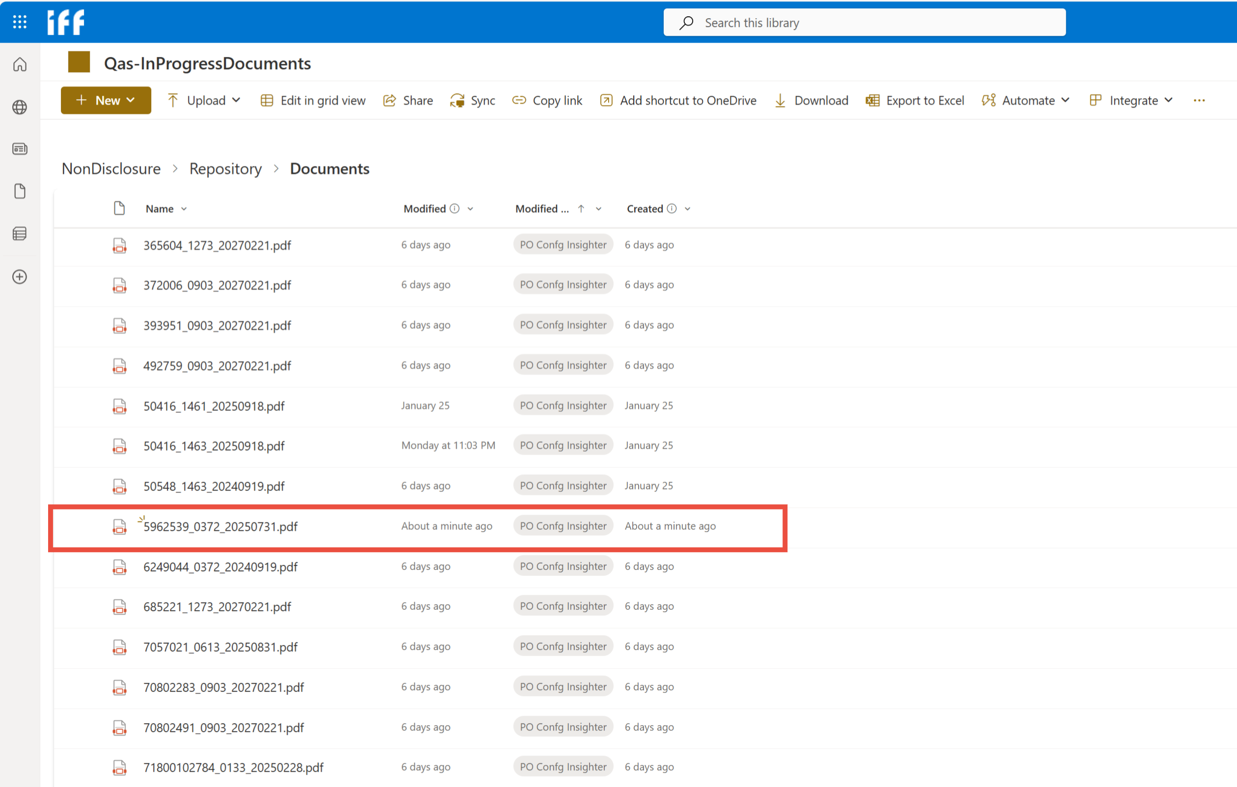 If all products are extracted correctly and mapped, the system will automatically post the document to IFF SharePoint. Clover team may access the post documents with naming pattern "ProductCode__PlantID__ExpirationDate.pdf" in the IFF SharePoint.