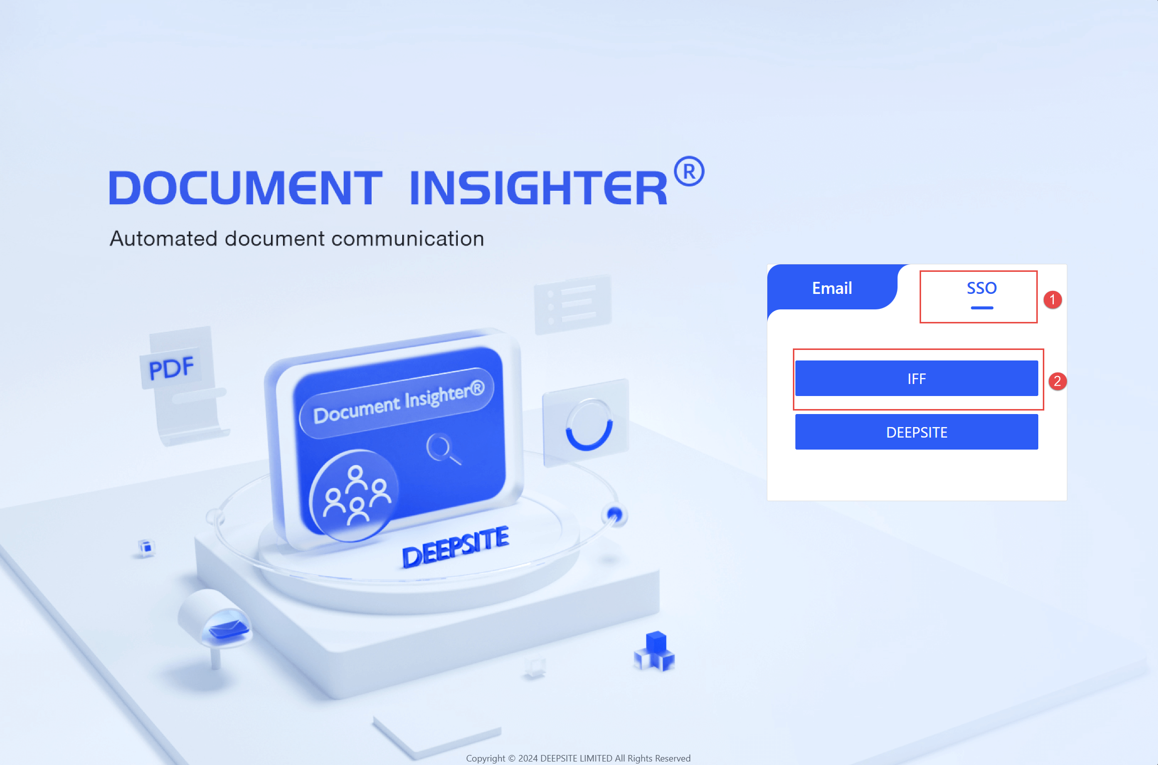 Open the browser and visit DEEPSITE Document Insighter - Prod / DEEPSITE Document Insighter - Staging for UAT to access the login page: